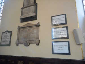 2.Inside St.Paul’s Covent Garden, the memorial plaques 0998 & 1002 Many of the actors are buried elsewhere, but it is interesting to read the names and to recall some of their work.